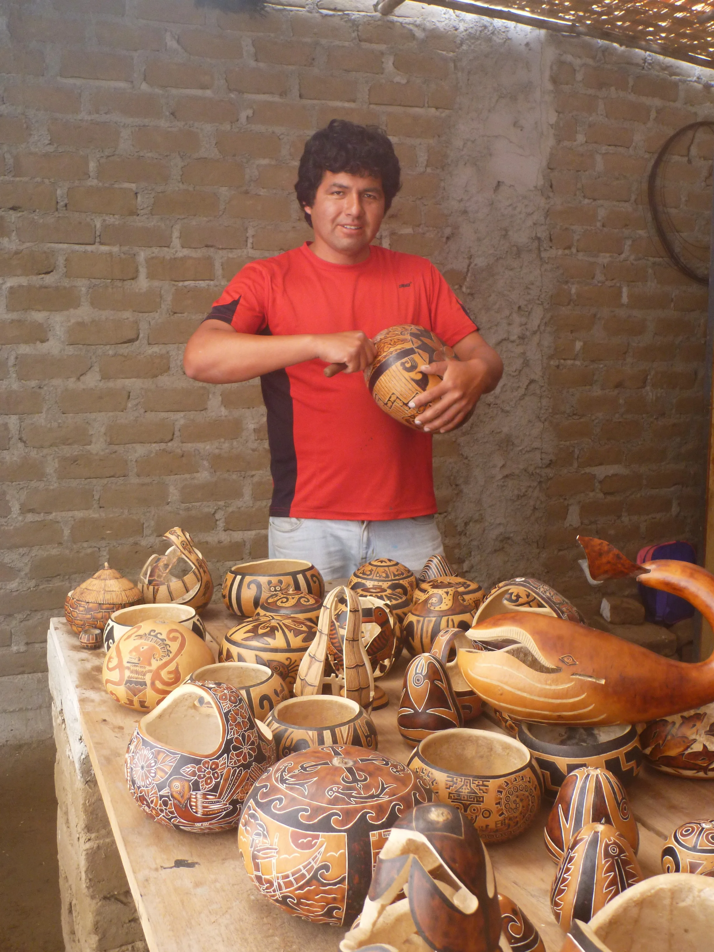In 2012, SPI provided a grant to Pampas Gramalote for artisanal and touristic development around the site and in the local community. The project invested in local resident and master-craftsman Ivan Cruz, to expand his gourd carving business and spread his experience with new artisans in the community. Alongside this, SPI provided infrastructure for an artisan training center, and new space for retail and exhibitions about the site for locals and tourists.
